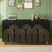 4 Door Cabinet Modern Fluted Sideboard Buffet With Storage, Curve Element With Strict Lines - Black