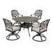 • Timeless Elegance: Elevate outdoor spaces with a Modern Aluminum Dining Set featuring Cushioned Swivel Chairs and a Round Table for enduring style.