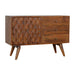 • Carved Sideboard - Enjoy this sideboard in your bedroom or living room, constructed from 100% solid wood in a finish, it features 4 Nordic style legs with 3 deep drawers and 1 cabinet to take care of everyday utility items. The main feature of this product is the raised carved door front which adds a nice touch to the product and will add lasting character to your home.