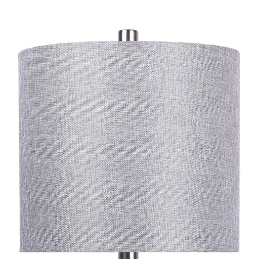 8th StreetModern Design: Vase-like shape in textured grey ceramic with a grey linen drum shade and polished silver metal finial adds contemporary style t...