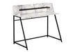 - Stylish Design: The computer desk features a marble-look finish with a small hutch and a long shelf in a contrasting finish, adding a modern touch to your home office.