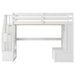 Full Size Loft Bed With Desk And Shelves, 2 Built In Drawers, Storage Staircase - White