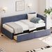 Twin Size L-Shape Corner Bed, Corduroy Upholstered Daybed With 2 Storage Drawers And Vertical Striped Design - Blue