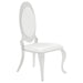 Exquisitely modern with a hint of Art Deco design, this chrome and black tempered glass dining set will make an incredible impact on your dining space. The double hooped designs serve a spectacular base in a chrome finish, which beautifully complements the tabletop. Armless chairs accompany the set with pearlized leatherette upholstery which contrasts with the tabletop. Oval shape backrests are complemented with cabriole style legs in an unexpected chrome finish. Bring this set into your space for an incredible twist to your modern decor.