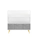 - Modern and Stylish Look: White panels and gray fabric bins offer a clean, contemporary aesthetic that matches various room styles.