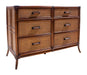 Bring a touch of tropical elegance to your bedroom with the Palm Cove six-drawer dresser. The dresser features a stunning blend of rattan woven weave and pencil rattan poles that are bound together with leather, finished in a rich antique two-tone color. The result is a timeless and exotic piece that will transform your bedroom into a paradise oasis. With six spacious drawers, this dresser is perfect for storing your clothes and accessories. The glass top adds a touch of sophistication while protecting the dresser from scratches and wear. Make a statement in your bedroom decor with the Palm Cove six-drawer dresser.. luxury outdoor durable. luxury outdoor durable