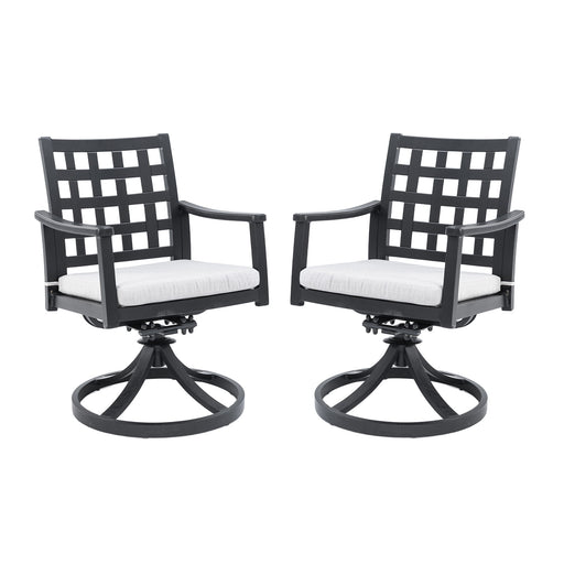 Original price $939.99Original price $939.99 - Original price $939.99Original price $939.99Current price $609.99$609.99 - $609.99Current price $609.99Modern Classic Outdoor Dining Swivel Rockers With Sunbrella Cushion, Lattice Design, Weather Resistant Frame (Set of 2) - Ember Black