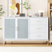 Queen Murphy Bed With Frosted Glass Doors Design, Fake Drawers, Metal Legs - White