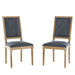 French Country Dining Chairs (Set of 2) Elegant Cane Backrest, Upholstered Seats, Fluted Legs, Rustic - Blue Gray
