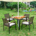 5 Piece Patio Dining Table Set, Acacia Wood Table Top With Umbrella Hole