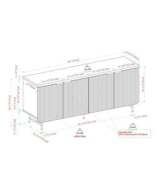 Walker EdisonModern Scandinavian design 4 trendy, fluted doors Ample cabinet space behind doors Made with warp-resistant MDF and durable laminate Minimalist ha...