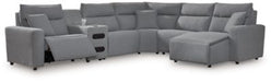 Modmax II - 6-Piece Power Reclining Sectional With LAF Press Back Power Chaise And Console - Salt And Pepper