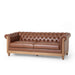 Comfy 3 Seat Sofa With Wooden Legs, Retro Style For Living Room And Study - Light Brown