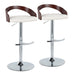 Grotto - Contemporary Adjustable Barstool With Swivel With Rounded T Footrest (Set of 2) - Chrome / Walnut / Cream