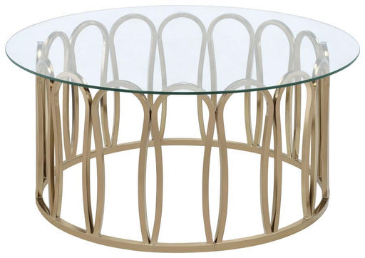 CoasterEssenceThis round table features a clear tempered glass top supported by a durable metal frame. The base is finished in a striking electroplated chocolate...