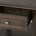 • Transitional design includes rounded molded table top, framed drawers, square,slightly tapered legs and antique bronze classic drawer pulls