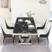 Luxury Modern Dining Table With 6 Chairs Marble Top Titanium Plated Base - Black