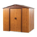Metal Storage Shed Appealing Horizontal Siding In Woodgrain With Coffee Trim To Complement - Light Brown