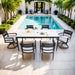 7 Pieces Modern Outdoor Patio Dining Set, Rectangular Dining Table, 4 Chairs & 2 Swivel Rockers, Sunbrella Cushions - Ember Black / White