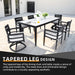 - Dining Set:Includes a rectangular table with a marble-inspired sintered stone top and 6 swivel rockers.