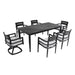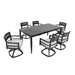7 Pieces Modern Outdoor Patio Dining Set, Rectangular Dining Table, 6 Swivel Rockers With Sunbrella Cushions - Ember Black