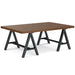 - Features a simple and extra thick table top surface and sturdy charcoal powder coated metal sawhorse supports