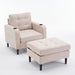 Beige Upholstered Armchair And Storage Ottoman Set, Comfortable Single Sofa With Cup Holders And Tufted Detailing, Ideal For Living Room Or Bedroom - Beige