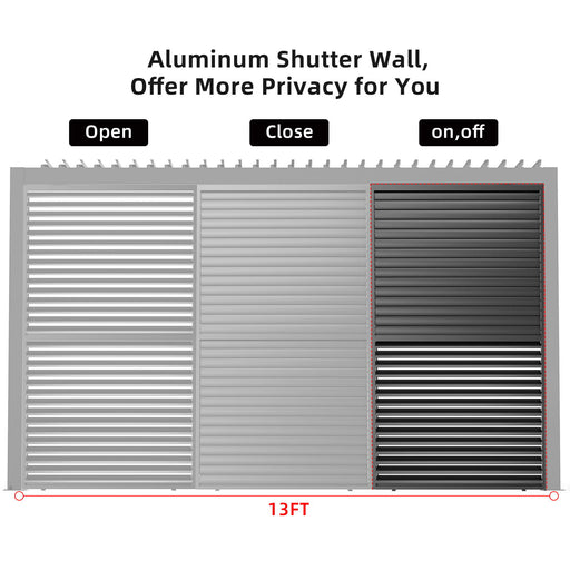 Spacious 13x10 Ft Canopy: Offers ample shaded space to comfortably fit a dining set or outdoor lounge furniture, perfect for entertaining 7–8 peop...