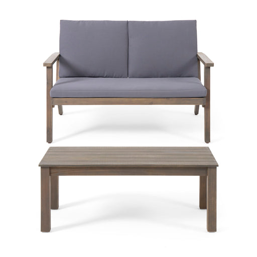 Noble HouseStylish Outdoor Loveseat Set: Elevate your patio with this mid-century modern loveseat table set, featuring sleek slatted designs and durable acac...