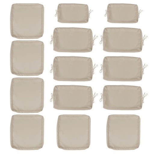 Home EssentialsComplete Cover Set: Includes 14 pieces (6 seat covers: 25.6" L x 25.6" W x 3.9" H, 6 backrest covers: 25.6" L x 13.8" W x 3.9" H, 2 armrest covers...