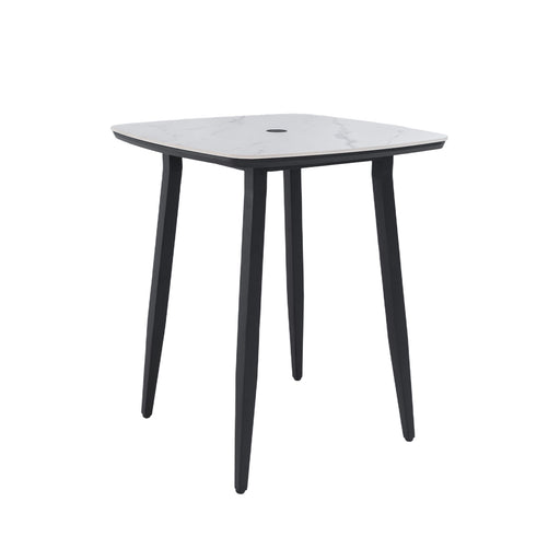Original price $829.99Original price $829.99 - Original price $829.99Original price $829.99Current price $579.99$579.99 - $579.99Current price $579.99Modern Outdoor Bar Table, Rounded Square Sintered Stone Top With Umbrella Hole, Rust Free Frame, Weatherproof - Ember Black / White