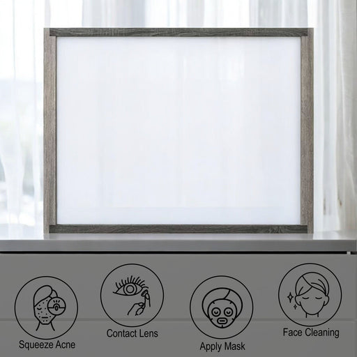 AcmeRefined Charm: This mirror features a Weathered White Finish, offering a transitional design that blends modern simplicity with rustic warmth...