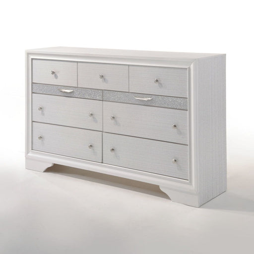 AcmeElegant Design: This dresser combines elegance with practicality, featuring a shimmering silver trim accent that beautifully frames the drawers, ...
