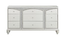 - Elegant Design: The Maverick Platinum Finish Dresser combines elegance and functionality, featuring nine spacious drawers ideal for ample storage. Its sophisticated arched top drawer adds a refined touch to its overall design.