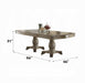 - Design Features: The dining table features a rectangular shape with a double pedestal base, highlighted by raised floral motifs on the wooden pedestals. The grooved trim on the wooden top adds a touch of elegance.