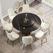 Modern Artificial Stone Round Metal Iron Base Dining Table, Can Accommodate 8 People Artificial Stone Turntable (Not Including Chairs) - Black
