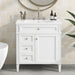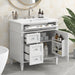 - Durability and Functionality: Constructed from high-quality materials, this vanity is designed for durability and functionality, featuring soft-close doors and a water-resistant paint finish to protect against water stains and dust.