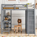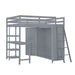 Full Size Loft Bed With Wardrobe And Desk And Shelves - Gray