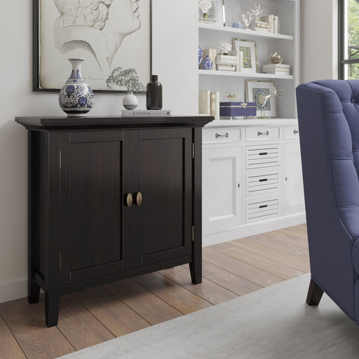 Simpli-HomeHandcrafted with care using the finest quality solid wood Functional storage cabinet has two doors that open to two adjustable shelves for versati...