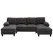 U Shaped Sectional Sofa Couch With Dual Chaise Lounges, Storage Pockets, Armrest Pillows - Black