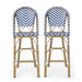 Outdoor Rattan French Barstool Set,, Bamboo, Seat Height - Navy Blue / White