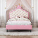 Twin Size Lovely Crown Fantasy Leather Princess Bed With Tufted Headboard - Pink / Cream