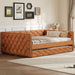 Upholstered Full Long Daybed With Trundle And LED Armrests - Brown