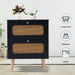 2 Drawer Rattan Nightstand For Bedroom And Living Room, End Table, Side Table With 2 Hand Made Rattan Decorated Drawers - Black