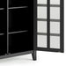 - Features 2 tempered glass doors that open to four adjustable shelves for versatile storage