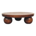 - Chestnut Central Ball Table - The Chestnut Coffee Table, crafted from 100% solid mango wood, exudes elegance with its rich hue and intricate grain patterns. Supported by distinctive ball feet, this table combines durability with a timeless design. Its warm chestnut finish seamlessly complements various decor styles, making it both a functional and stylish centerpiece for any room.