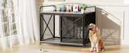 - Practical Features: The kennel features a spacious desktop with a curved back panel to store pet supplies and personal items securely. The unique sliding barn door design ensures easy access for dogs and includes a lock for added safety, making it ideal for compact spaces.