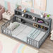 Twin Floor Bed With Bedside Bookcase, Shelves, Guardrails - Gray