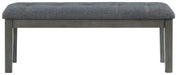 Cool and on-trend. This dining bench sports a two-tone gray look for a contemporary-yet-casual feel. The cushioned foam seat in a gray textural fabric pairs seamlessly with the antiqued gray finish, providing you with a super-stylish and versatile seating option.