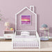 Twin Size Metal House Platform Bed With Guardrail And Chimney - White